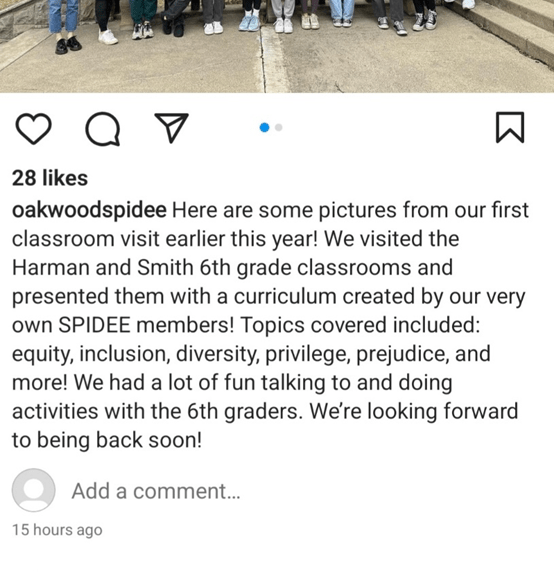 In May 2022, parents observed the following poster throughout the halls of Oakwood High School, inviting students to join a “student run” organization titled SPIDEE (Students Promoting Inclusion, Diversity, and Equity through Education):